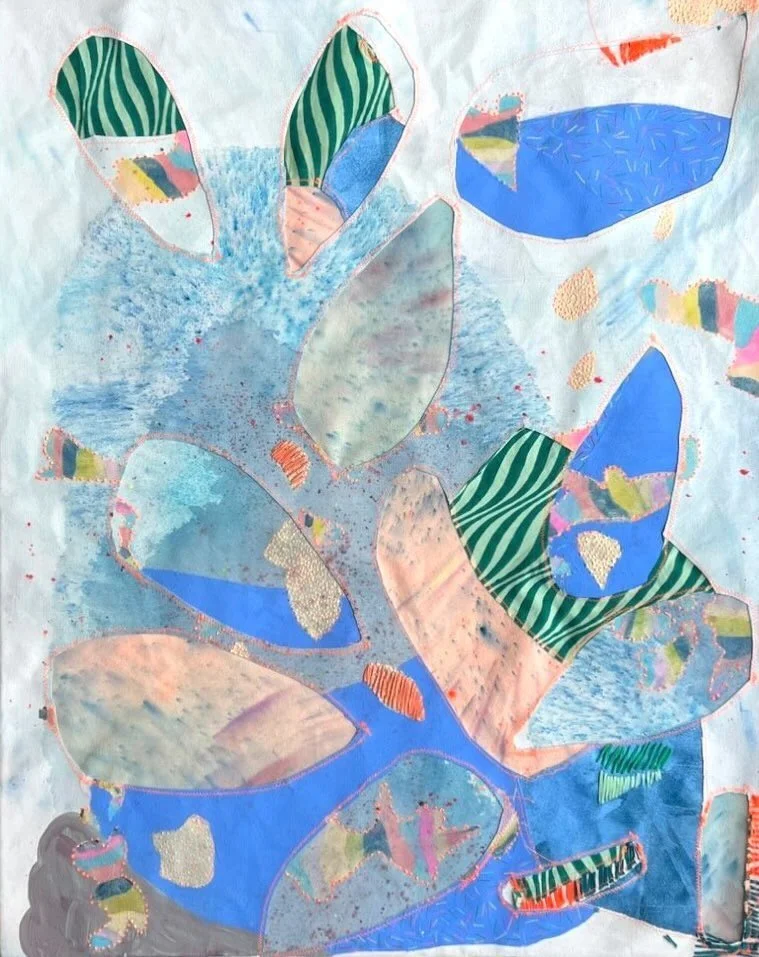 Acrylic, pigment, cotton, thread and vinyl on raw canvas