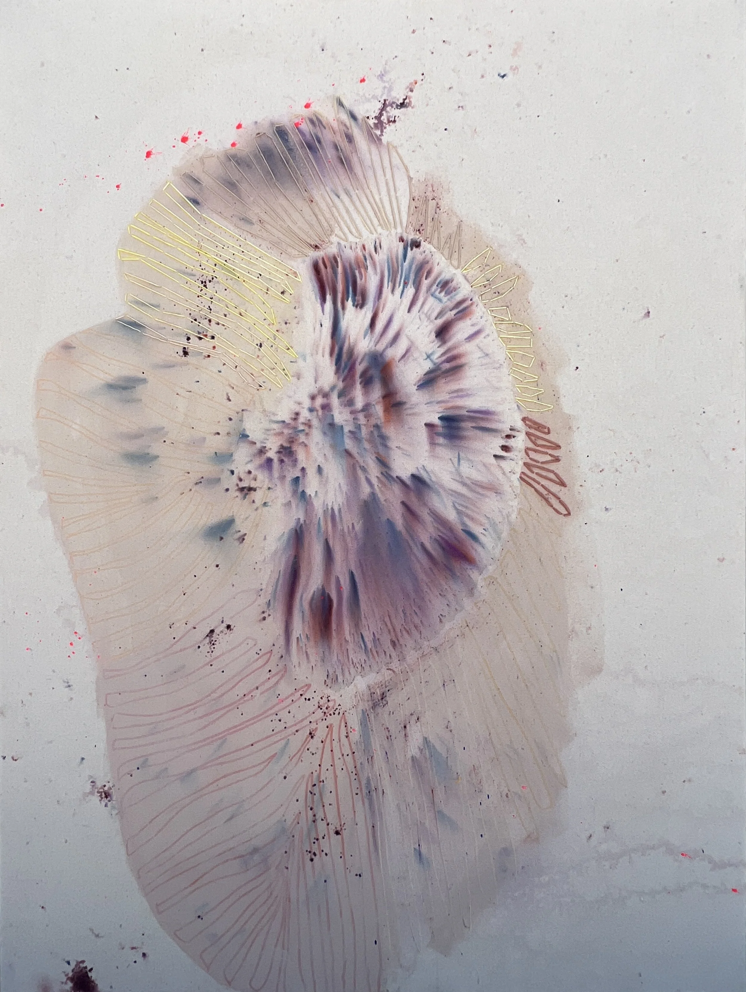 Acrylic, pigment and thread on raw canvas
